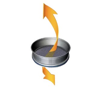 樣品在篩底振動(dòng)的作用下向上拋起,然后在重力的作用下向下回落。