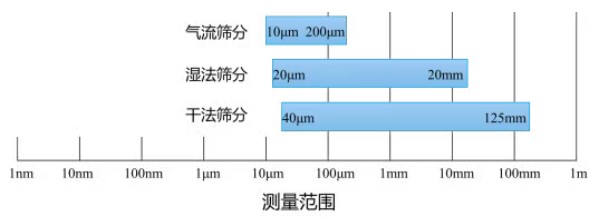 圖1 不同篩分方法的粒度測(cè)量范圍
