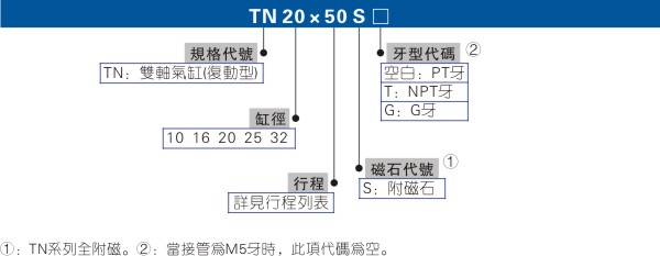 亞德客AirTAC TN系列雙軸氣缸