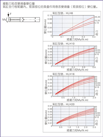 1.2、不同類(lèi)型扭矩作用于氣缸上時(shí),會(huì)產(chǎn)生不同程度變位量,具體參考下表。