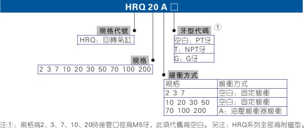注:HRQ2、3、7僅有調(diào)整螺絲固定緩沖方式,無油壓緩沖器緩沖方式。