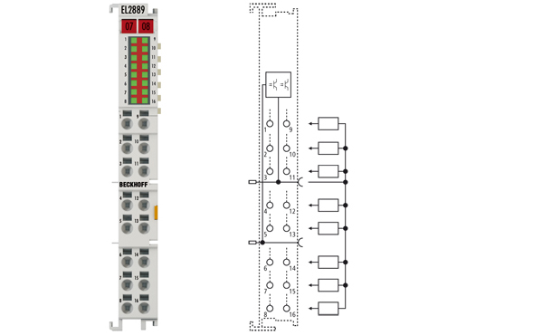 EL2889 | HD EtherCAT Terminal, 16-channel digital output 24 V DC, 0.5 A, 0 V (ground) switching