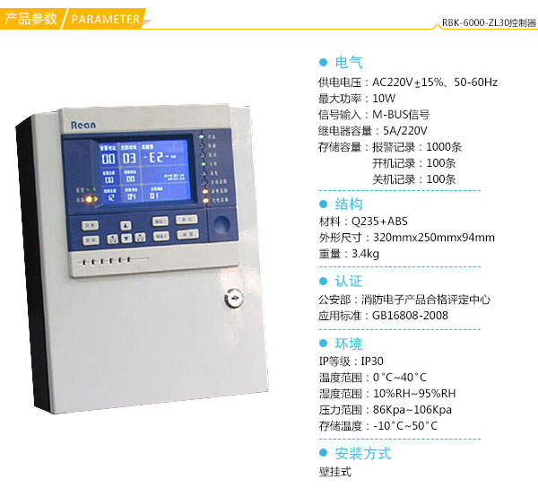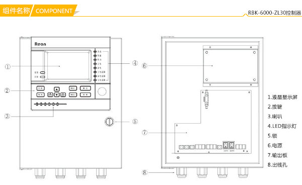RBK-6000-ZL30可燃?xì)怏w報(bào)警控制器的產(chǎn)品概述: RBK-6000-ZL30是 款多功能實(shí)用型且操作方便的氣體報(bào)警控制器,負(fù)載容量30路,帶有聯(lián)動(dòng)輸出功能,可同時(shí)聯(lián)動(dòng)排風(fēng)或是噴淋系統(tǒng)等其它外圍設(shè)備。RBK-6000-ZL30可燃?xì)怏w控制器設(shè)備傳輸距離為上限800米,聲光報(bào)警,36V無 性接線安裝(不區(qū)分正負(fù) ),為非防爆產(chǎn)品,應(yīng)當(dāng)安裝在非防爆場(chǎng)所,采用壁掛式安裝。