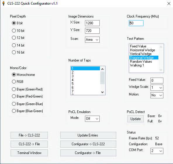 CLS-222 Camera 1ink PoCL模擬器 (v2.1)