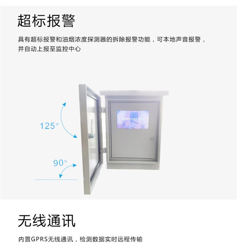 是可實(shí)現(xiàn)油煙排放濃度實(shí)時(shí)監(jiān)測(cè)的儀器,其主要由構(gòu)成由采集器主體、顯示屏、油煙探頭三部分。內(nèi)置物聯(lián)網(wǎng)3G/4G模塊,采用實(shí)時(shí)在線(xiàn)、自動(dòng)上傳的方式工作。采集器帶有油煙探頭專(zhuān)用接口,用于連接探頭。采集器通過(guò)控制探頭采集油煙原始數(shù)據(jù),讀取探頭采集到的原始數(shù)據(jù),并進(jìn)行計(jì)算,*終得到油煙濃度值,可以在顯示屏上直接讀取數(shù)據(jù)。油煙在線(xiàn)監(jiān)控系統(tǒng)由實(shí)時(shí)數(shù)據(jù)監(jiān)測(cè)、歷史數(shù)據(jù)查詢(xún)、基礎(chǔ)信息管理、用戶(hù)信息管理等幾部分功能組成。