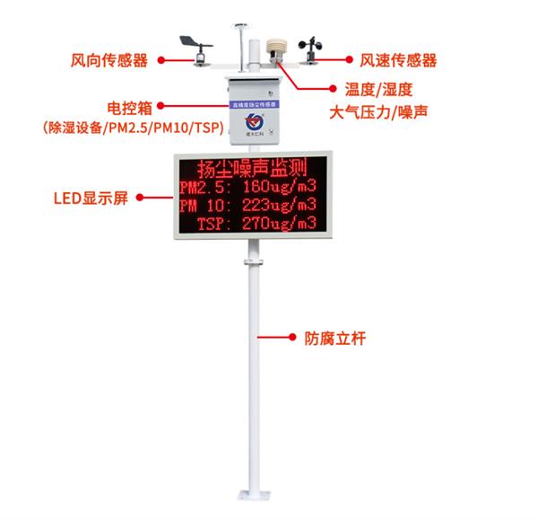 噪聲揚(yáng)塵監(jiān)測(cè)站是專(zhuān)門(mén)針對(duì)在建工程項(xiàng)目的監(jiān)測(cè)設(shè)備。設(shè)備具有泵吸功能采用高精度PM(PM2.5/PM10/TSP)傳感器,并且?guī)в谐凉窆δ?,該設(shè)備具有1路百葉盒(溫度、濕度、噪聲、氣壓)采集、1路風(fēng)速采集、1路風(fēng)向采集、1路繼電器輸出(默認(rèn)可接現(xiàn)場(chǎng)二***繼電器控制霧炮)、1路485從站輸出;該設(shè)備可通過(guò)GPRS方式將數(shù)據(jù)上傳監(jiān)控軟件平臺(tái),同時(shí)該主機(jī)能夠外接1路LED屏(54cm*102cm)實(shí)時(shí)顯示當(dāng)前數(shù)值信息。