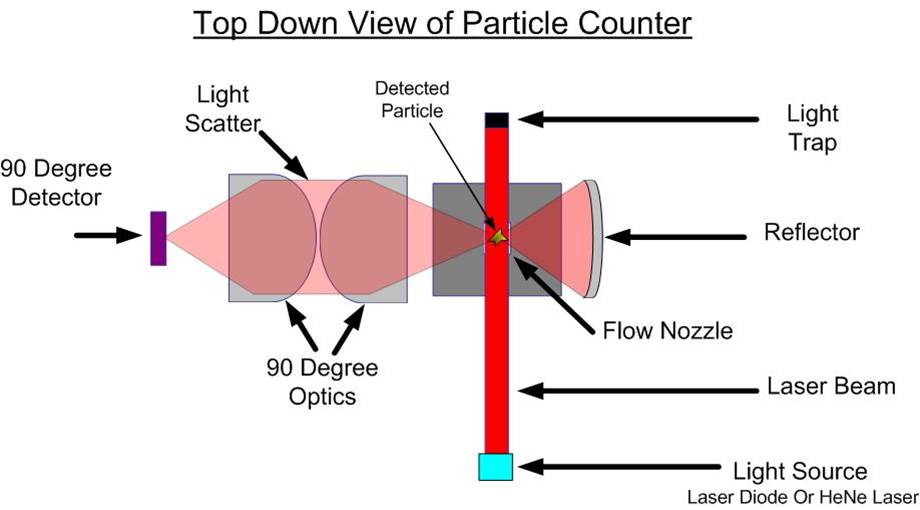 1. 激光散射法檢測(cè)原理,檢測(cè)粒徑0.3――25um,六通道,用戶(hù)可自行定義每個(gè)通道的粒徑尺寸。