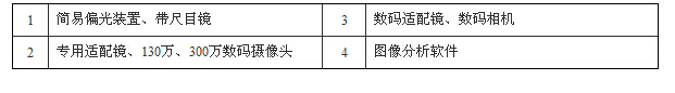 2 | 專用適配鏡、130萬、300萬數(shù)碼攝像頭 | 4 | 圖像分析軟件 |